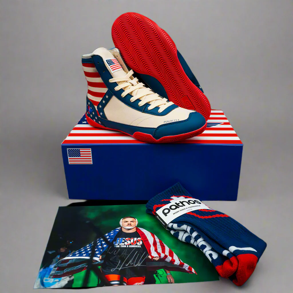 This shoe isn’t just for wrestlers— Its for those who fear no opponent, who fight with purpose, and who represent something greater than themselves. From a small business made for the people, this shoe stands for grit, faith, and freedom.
